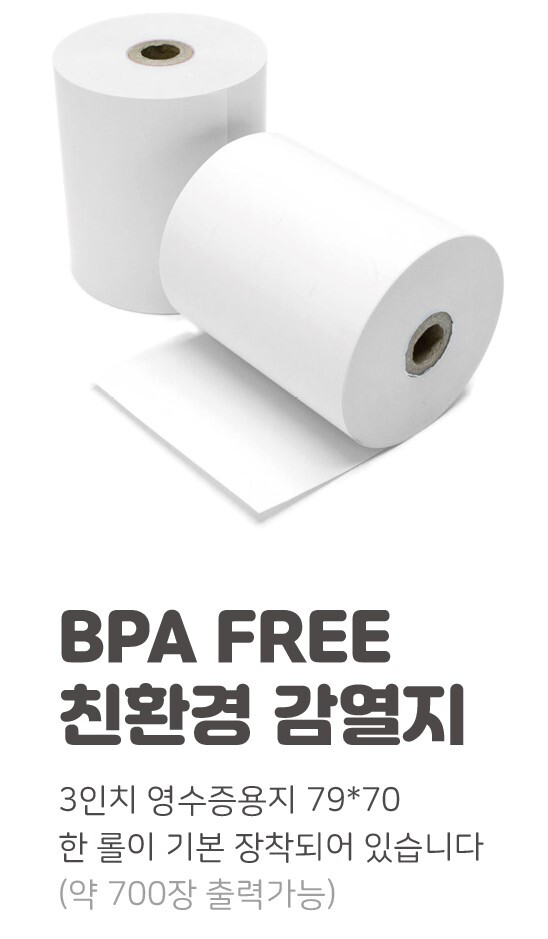 " 포스기 혹은 영수증 프린터의 용지(3인치) 그대로 쓸 수 있습니다 "