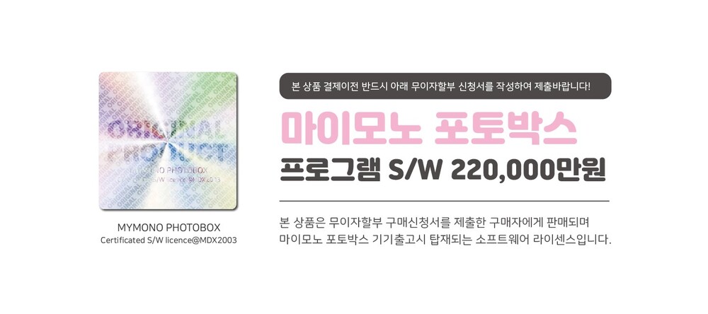 마이모노포토박스에 탑재되는 인증소프트웨어(\220,000원)는 일시불로 구매하시고